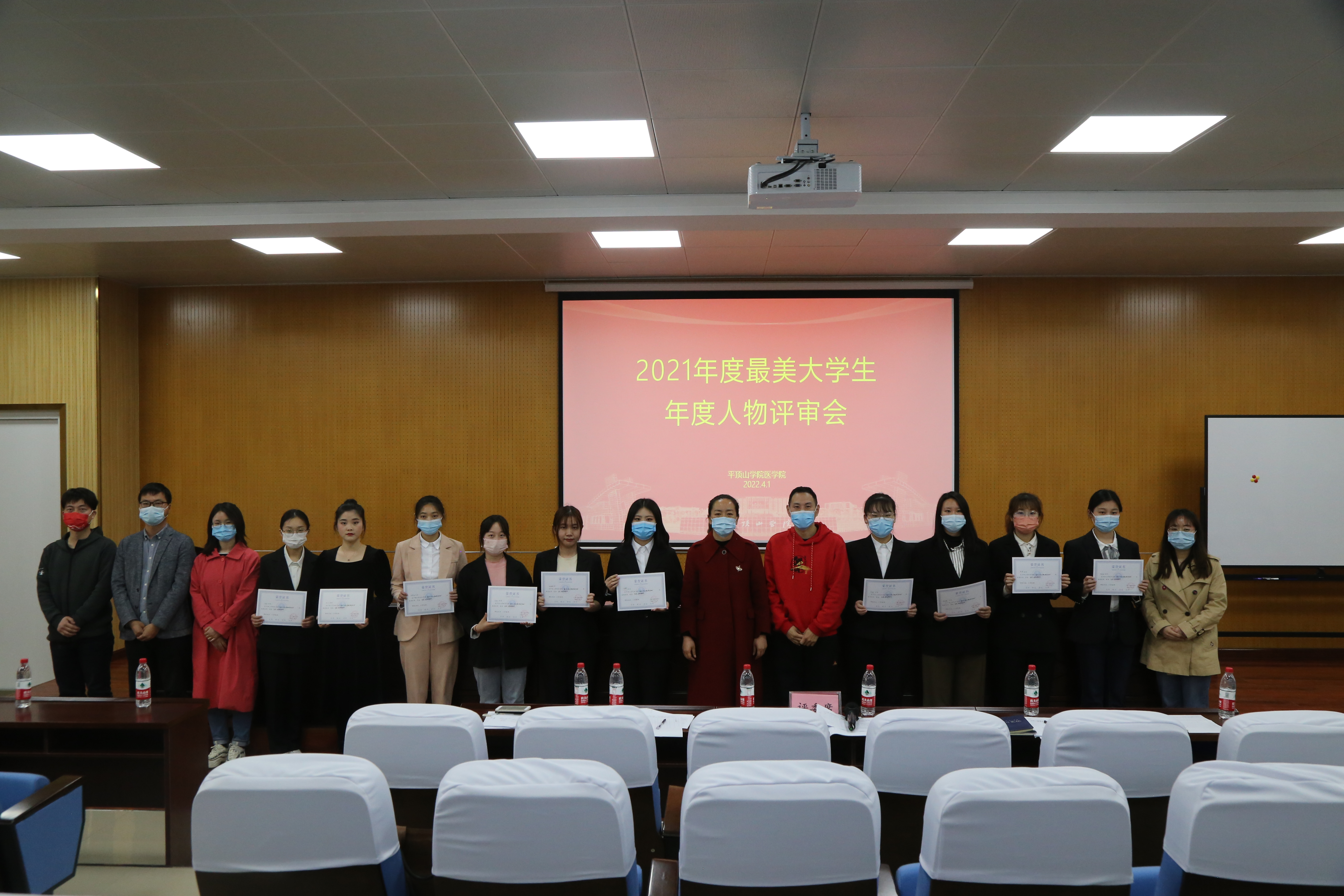 演讲评审中,参赛选手利用PPT,分享了自己的事迹故事,展示了同学们在勤奋学习、自强不息、假期抗疫、征兵入伍期间的优秀经历和优良风貌。活动最后党委副书记冯建对本次活动进行了点评总结,她肯定了同学们的成绩,并勉励大家继续把小我融入大我,用自己的经历影响带动身边更多的医学学子一起奋斗。最终,陈梦瑶、王晓曼、靳雅鑫、于晶晶、张怡敏、狄小文、周浩月、陈柯、杨子越、郭娜十名同学荣获最美大学生称号。