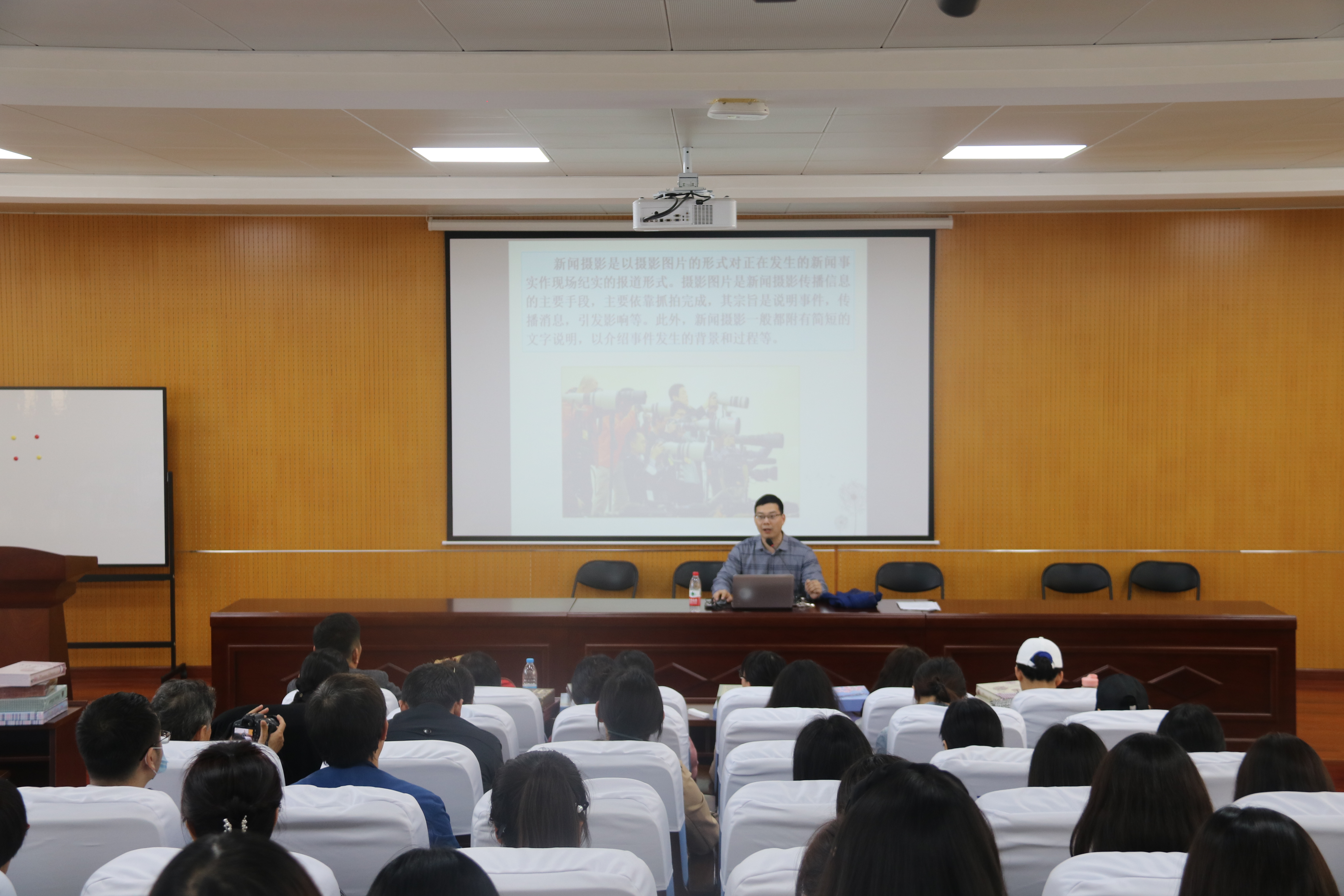 陈老师从事多年宣传工作,具有丰富的摄影拍照经验。陈老师在分享经验时重点强调摄影技巧的重要性,尤其是拍摄角度和拍摄方法,并运用经典的照片进行详细讲解。随后陈老师通过大量的新闻和生活照片,清楚直观的讲述了摄影的技巧和常识,提高了大家对摄影的认识与了解,令老师们收获颇丰。