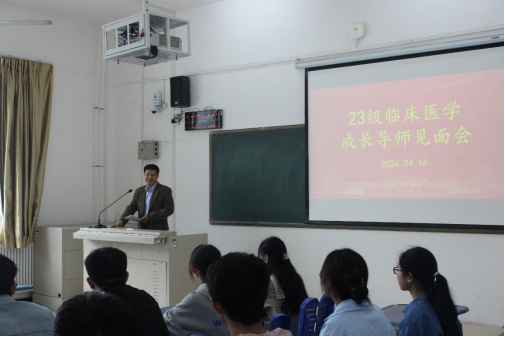 4月16日下午,23级临床医学本科生成长导师见面会在崇文校区B304教室举行。tyc539MACAU院长郑新华,tyc539MACAU党委副书记冯建、白现广出席此次见面会。23级临床医学成长导师、医学部相关人员及59名新生参加见面会。