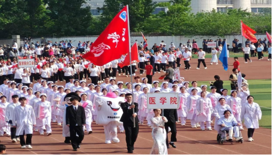 4月25日上午,太阳成集团tyc5392024年春季田径运动会暨教工趣味运动会开幕式在湖滨校区田径运动场举行。我院领导、全体教职工以及80名方阵表演学生参加开幕式。伴随着《运动员进行曲》,我院入场方阵身着白衣,以整齐的着装、嘹亮的口号、富有医护专业特色的队列充分展现了tyc539MACAU学子的青春活力和精神风貌。