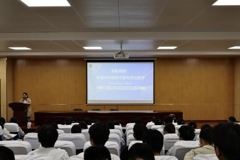 讲座期间,各专业负责人用“数字+案例”的方式,重点讲解学院历史、专业特色、人才培养方案和未来就业路径;学业导师结合亲身经历,围绕“怎样学好专业、怎样管好时间、怎样规划大学”给2025级新生提出具体学业规范发展建议。老师们从“医德三问”到“时间管理四象限”,从“实验室生存法则”到“临床思维养成记”,把专业现状、未来的发展、同学们如何就读大学,一一进行了解读和生动的诠释。一条条“学医之道”被贴上PPT,也被新生们快速写进笔记本,现场还展示了近三年毕业生考研、就业的“成绩单”,让新生对今后自己可能的去向有了直观感受,同学们纷纷表示受益匪浅。
