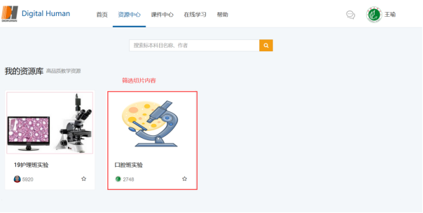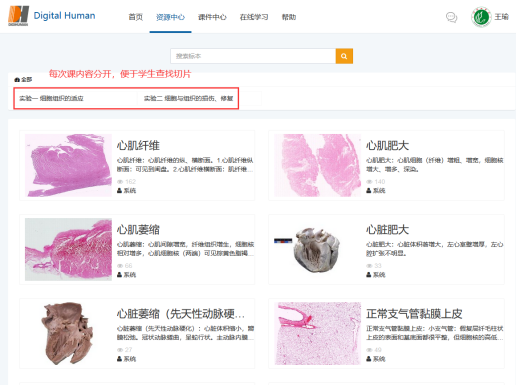 该虚拟仿真实验平台由数字化的“组织学”、“病理学切片”、“大体病理”、“寄生虫”、“微生物”等五个模块组成,包含切片标本2000多个及大量微生物实验。教学资源结合了全国众多高等tyc539MACAU校的资源,可基本满足我院形态学多门课程线上实验教学的需要。