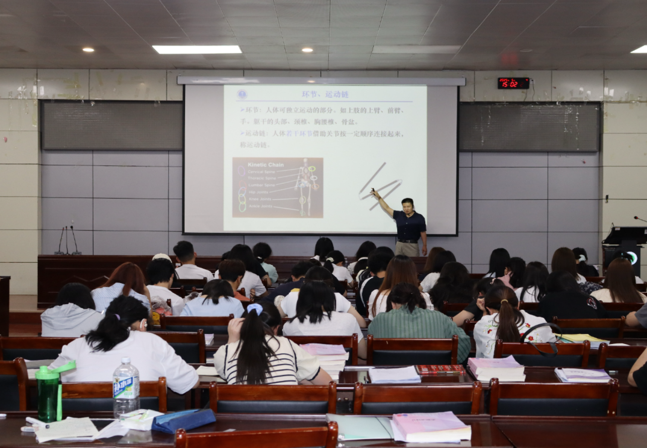 吴青坡老师指出,体育和医学的关系密不可分,要想科学健身,必须了解运动中的医学原理。他从运动系统的构成与功能讲起,为同学们详细介绍了环节及运动链等基本概念,并围绕人体运动基本原理、转动定律与人体运动等六个方面进行了全面的讲解,将专业视角与实际案例相结合,为同学们带来了极具价值的科学运动指导。