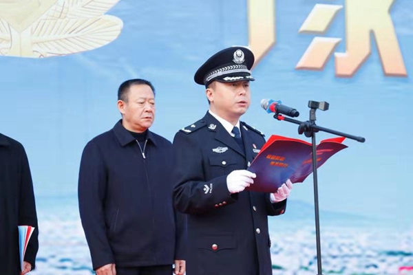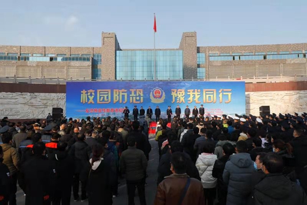 为普及反恐知识,进一步提高大学生反恐意识,太阳成集团tyc539于12月27日联合平顶山市反恐办、市公安局在崇文校区组织开展反恐教育进校园活动。平顶山市委常委、市政法委书记邓志辉,副市长、市公安局局长刘江,市政府副秘书长张昌升,市公安局党委书记、督察长房国卫,我校党委副书记田建伟,平顶山市及各区反恐办、公安局相关负责同志、民警代表,以及tyc539MACAU110名学生代表共同参加本次活动。