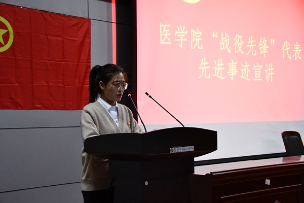 晚上7点,团课在《光荣啊,中国共青团》激昂的旋律中拉开帷幕。会上,我院“战疫先锋代表”——19级护理1班张梦迪上台宣讲,她通过讲述自己在抗疫时的经历,让团员们明白自己所承担的责任和担当。随后,与会人员集体观看了《为了和平》纪录片,纪录片向团员们展示了抗美援朝时期人民志愿军的奋勇无畏,增强了团员们对“抗美援朝精神”的理解和认同,使团员们更能从中感受到今天的和平生活来之不易。最后,团总书记夏乐以“使命在肩,奋斗有我”为主题,通过讲述抗美援朝时期的历史和现在祖国的瞩目成就,指导学生们秉着积极向上、艰苦奋斗、谦虚谨慎的态度去培养一名团员应有的内涵和素养。