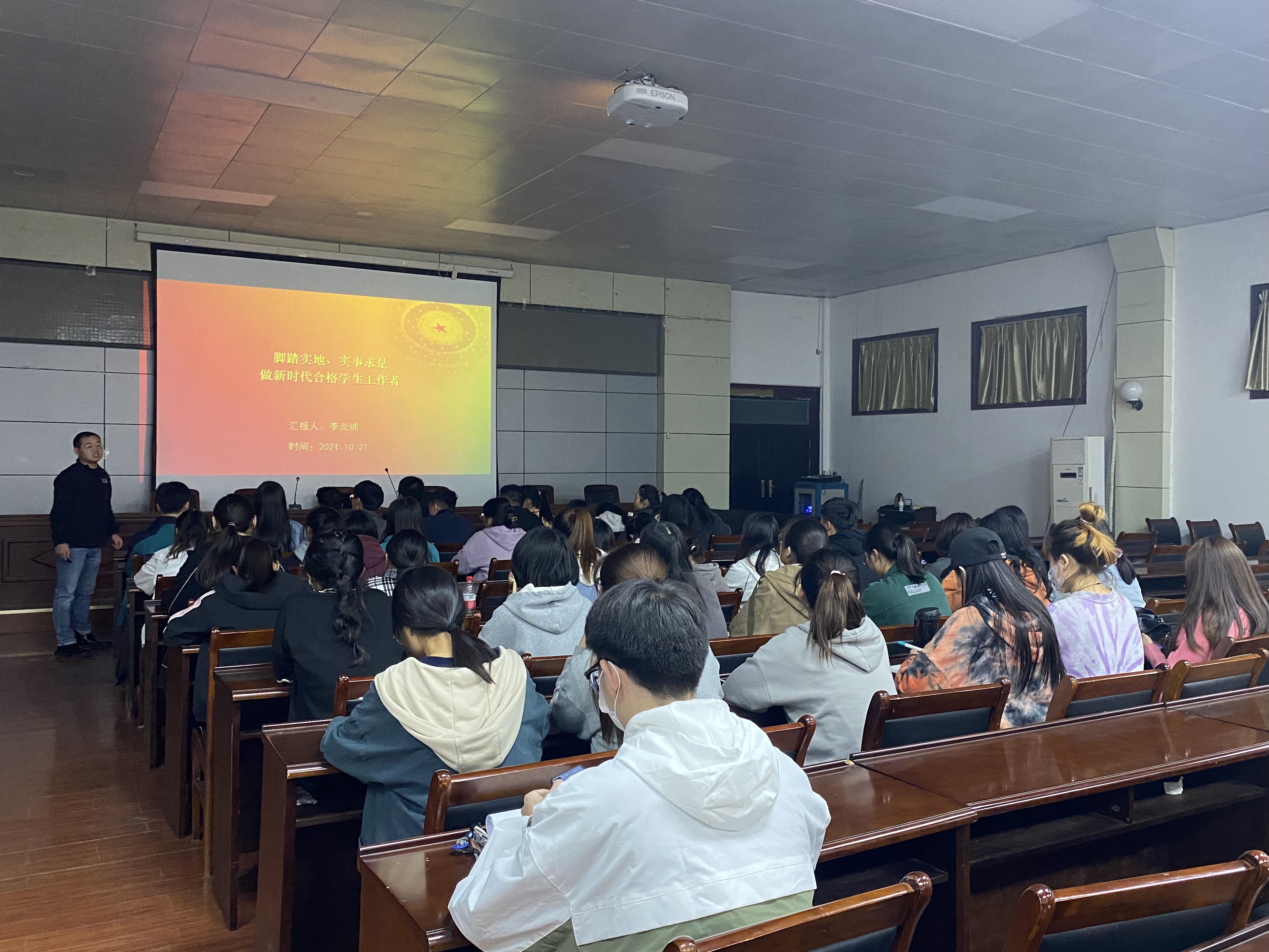 为提升学生工作人员综合素质和责任意识,tyc539MACAU于10月21日在教学楼四楼会议室举办第九届学生工作人员培训暨青马培训班。本次培训由李炎埔主讲,党团学社各学生工作人员共计80余人参加此次活动。