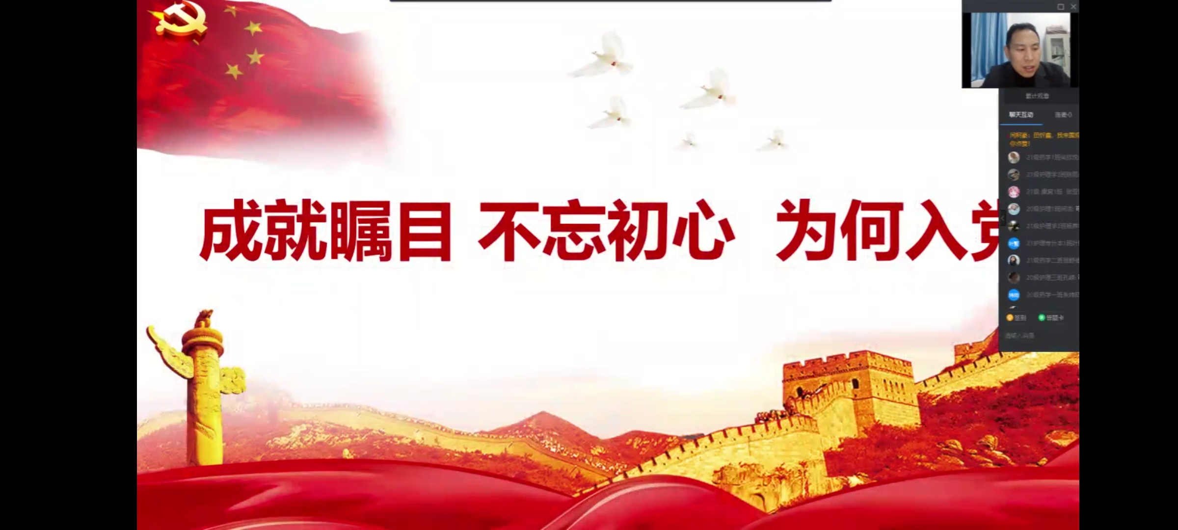为持续深入推进“学党史、强信念、跟党走”学习教育,进一步深入学习贯彻习近平新时代中国特色社会主义思想,tyc539MACAU按照疫情防控要求,于11月18日采取线上钉钉直播的形式,顺利举办了以“百年芳华铭初心,青春笃行强国梦”为主题的tyc539MACAU第二十七期团课开班仪式。此次团课开班仪式由团委书记夏乐主讲,团员代表共计303人。