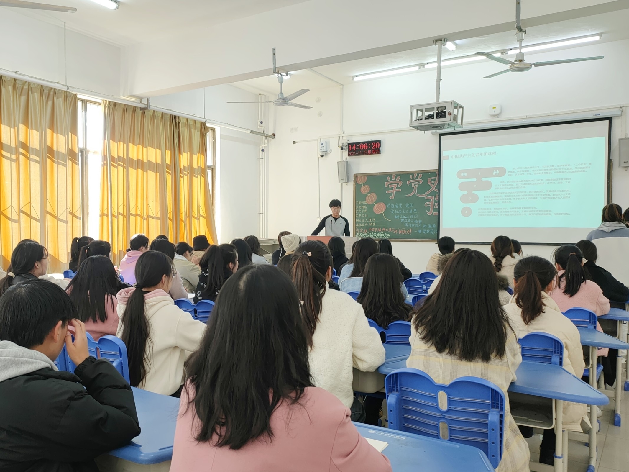 为深入学习贯彻习近平总书记“七一”重要讲话精神,落实“学史明理、学史增信、学史崇德、学史力行”要求,增强广大青年对中华民族、中国共产党、中国特色社会主义道路的认同,教育引导广大团员厚植爱党、爱国、爱社会主义的情感,tyc539MACAU组织大一各团支部于11月25日下午开展以“学党史、强信念、跟党走”为主题的团日活动,大二至大三的在校团支部于线上组织开展。