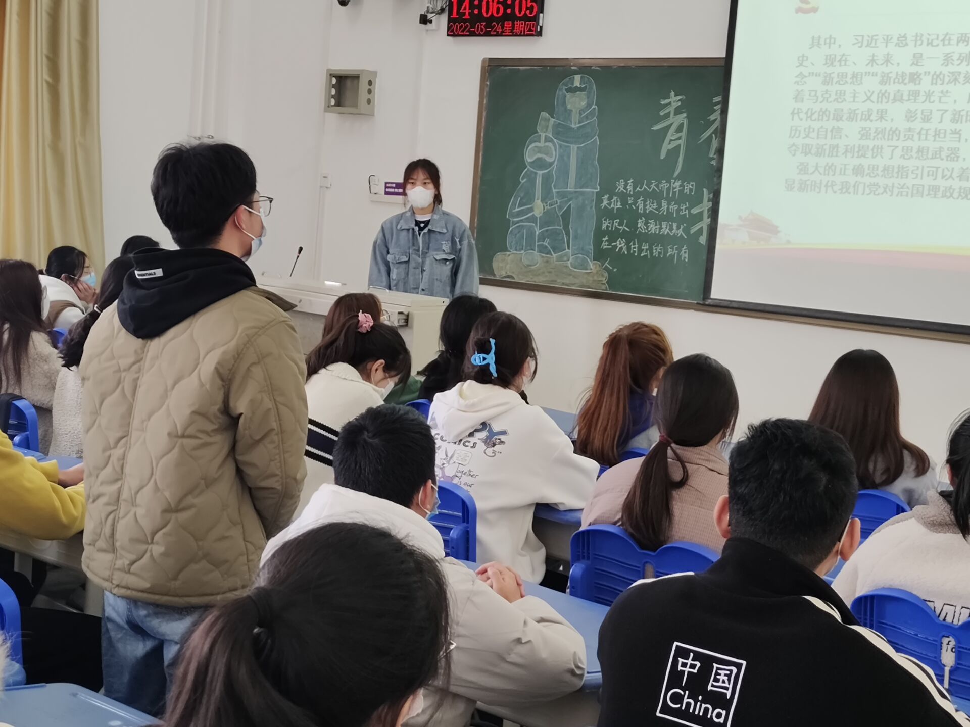此次团日活动由主持人带领同学们学习贯彻习近平总书记在中央政治局常务委员会会议上的重要讲话精神,坚定思想,增强自我防护意识。随后观看了疫情防护知识小视频,进一步巩固疫情防护的知识,同时强调我校近期疫情防控的各项措施,让同学们意识到疫情防控的重要性,积极配合,落实落细学校的相关安排与工作,严格做好自我防护。