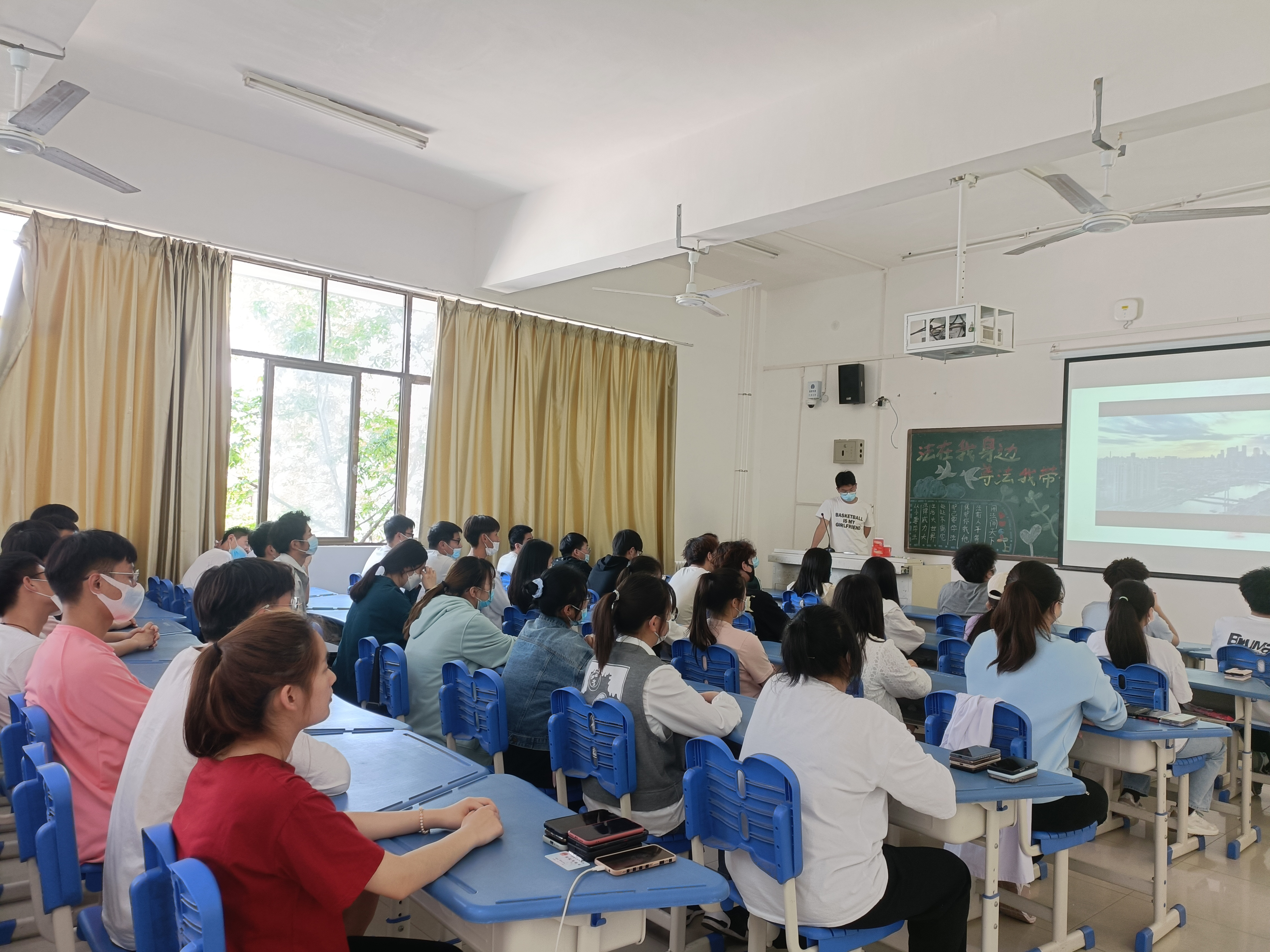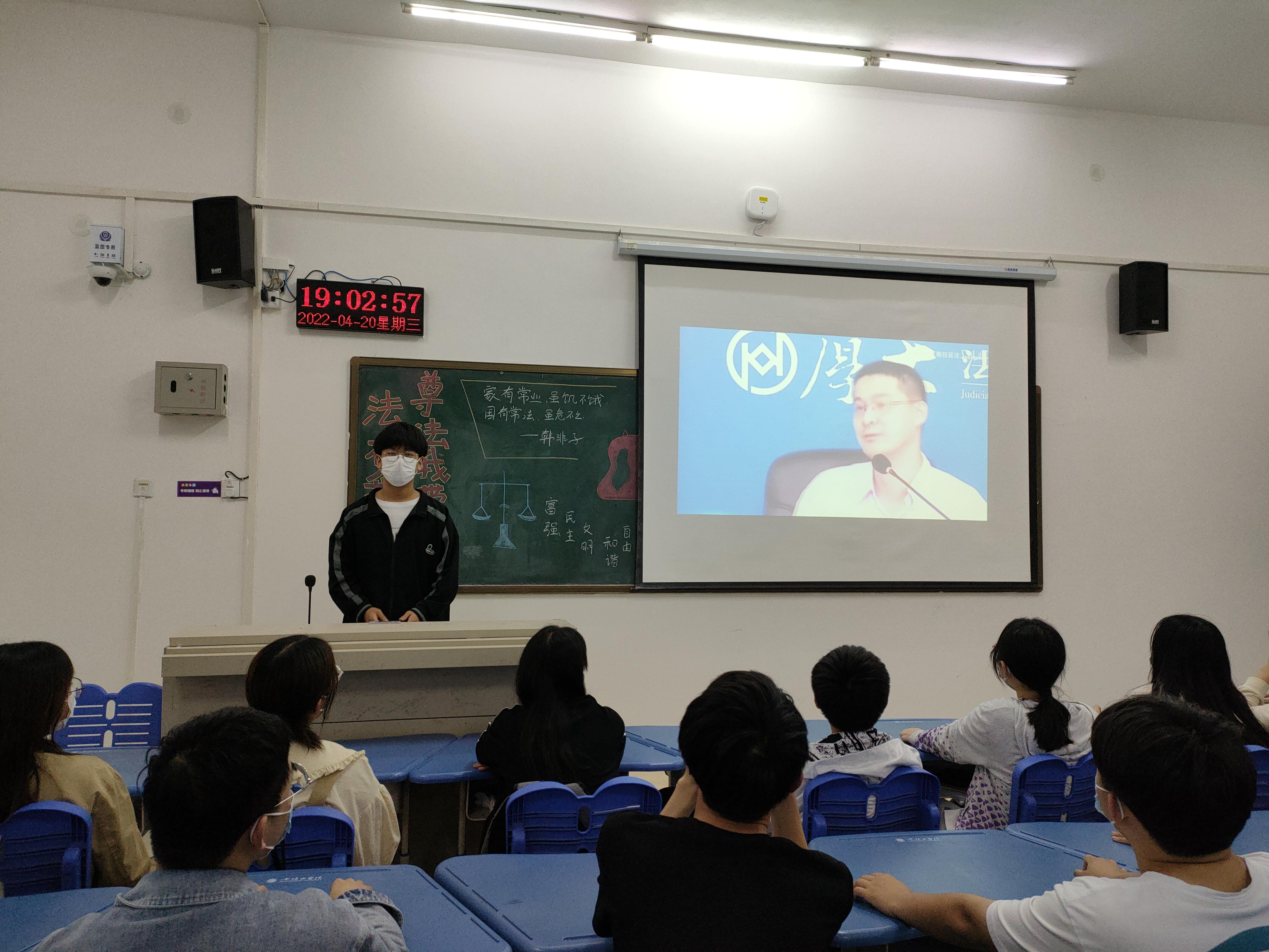 此次活动由主持人带领同学们学习《中华人民共和国民法典》、《宪法》等法律法规,通过播放普法宣传的相关视频,加强同学们对法律法规的了解。随后各团支部开展法律知识问答,紧扣活动主题、巩固学习成果,进一步加深同学们对我国法律法规的认识与理解。