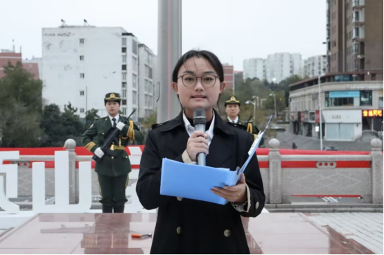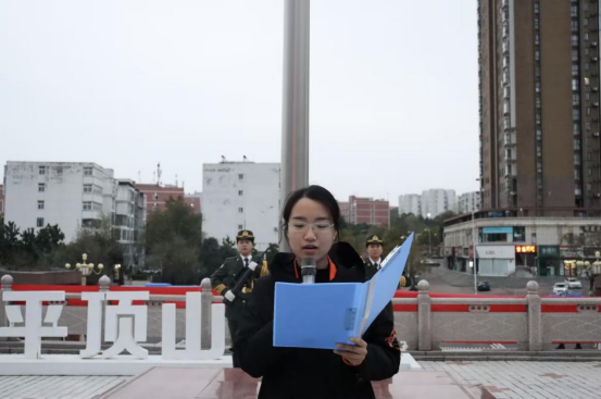 图3辅导员岳珂宁国旗下讲话