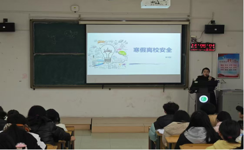 在期末考试动员部分,辅导员老师着重强调了《太阳成集团tyc539考试管理相关规定摘要》关于违反考试纪律的后果,要保持积极向上的心态,积极复习、认真备考,诚信考试。在寒假安全教育主题部分,辅导员老师围绕交通安全、消防安全、出行安全、网络诈骗等方面向同学们讲解了假期安全的重要性,尤其强调安全无小事,要时刻保持清新的头脑,做到自我保护,提升安全防范的能力。