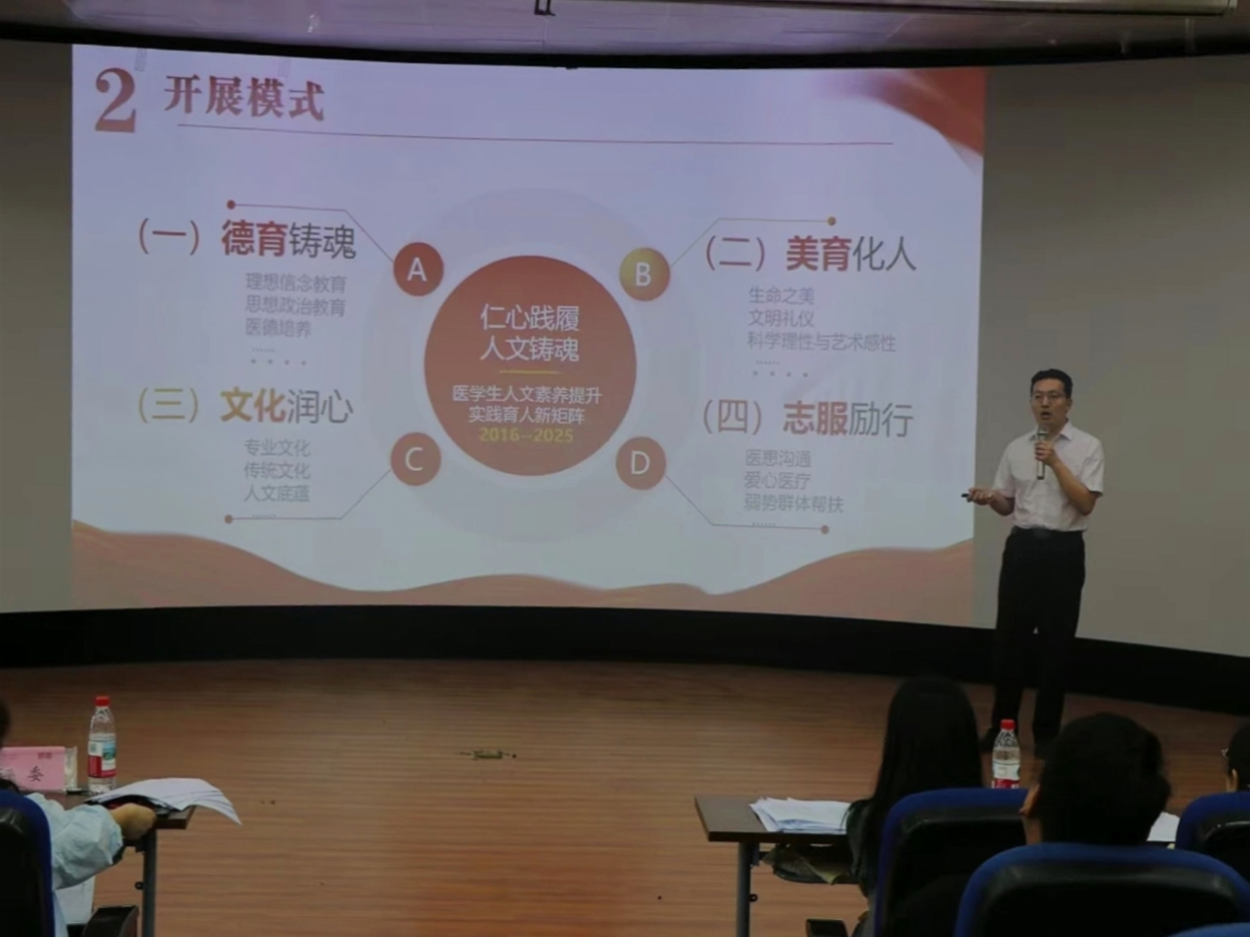 在比赛中,杨凯老师以医患关系现状作为引入,系统呈现学院构建的德育铸魂、美育化人、文化润心、志服励行四维育人体系,展示了tyc539MACAU共青团基础工作中的实践风采及广大学子良好的精神风貌。经过近两个小时的激烈角逐,《“仁心践履·人文铸魂”医学生人文素养提升实践育人工作项目》喜获一等奖。