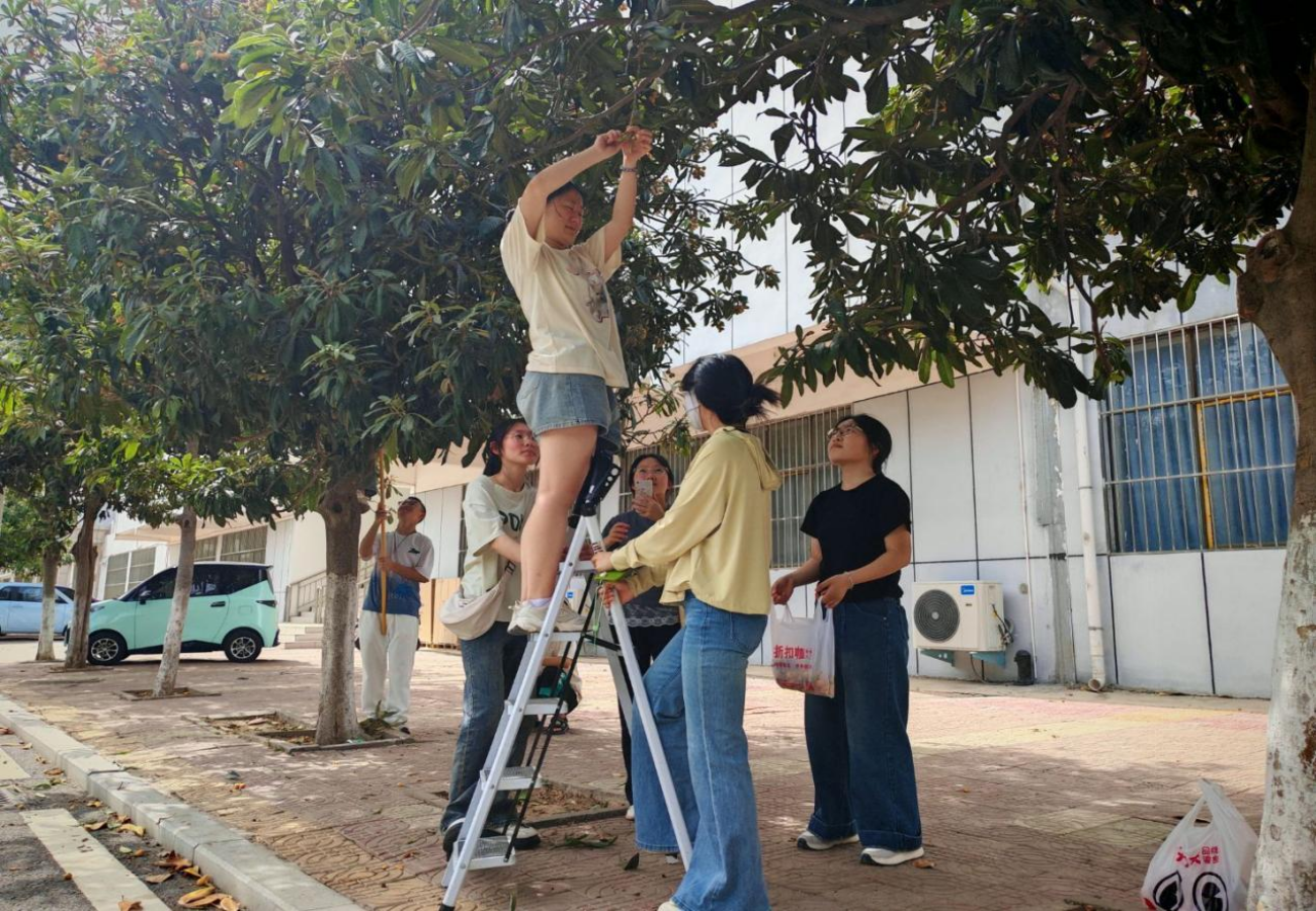 金黄五月,采摘枇杷品尝甜蜜。5月8日,社团联合会在崇文校区举办了“校园枇杷节”活动。同学们手持工具,分组协作采摘枇杷,有的负责摘取高处果实,有的摇晃树枝收集成熟枇杷,现场欢声笑语不断,在亲近自然之中体验劳动乐趣。