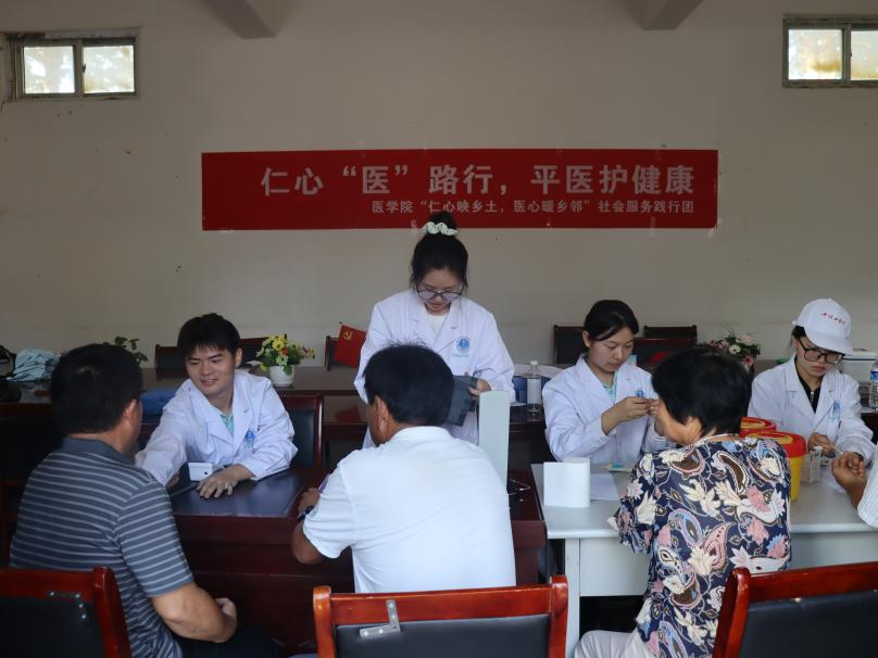 7月3日清晨,tyc539MACAU2025年“仁心映乡土,医心暖乡邻”社会服务践行团开展以“仁心‘医’路行,平医护健康”为主题的爱心义诊社会实践活动。