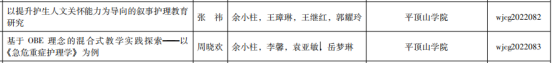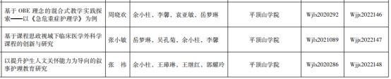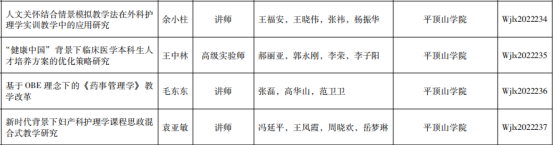 近日,河南省卫生健康委员会下发了《关于公布2022年河南省医学教育研究项目立项教学成果和优质课评选结果的通知》(豫卫科教函〔2022〕34号),此次我院共立项河南省医学教育研究项目4项;结项5项;获河南省医学教育优秀教学成果一等奖1项,三等奖2项;获医学教育优质课教学三等奖1项。
