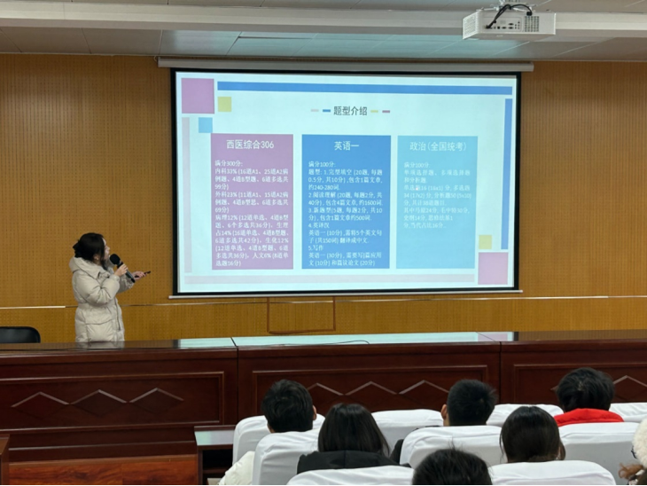 硕士研究生考试一直是临床医学专业学生关注的焦点,也是他们职业生涯规划的必选项。为满足学生们对考研信息的迫切需求,2023年12月14日下午,临床医学系组织召开了“临床医学专业考研经验分享交流会”。本次交流会邀请第一附属医院内分泌科何怡珮主治医师主讲,tyc539MACAU副院长夏西超、临床医学系主任吴青坡、教师代表及临床医学专业全体学生参加了此次会议。