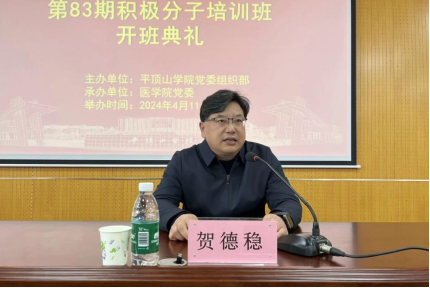 接下来,党委组织部长、党校副校长贺德稳同志在开班致辞中指出,对入党积极分子进行集中培训,既是党组织的明确要求,也是为了帮助大家进一步掌握党的知识,提高政治素质的现实需要。对此,他向参训学员提出了三点期望:一要端正态度,正确认识参加入党积极分子培训的重要意义;二要明确目标,努力提高入党积极分子培训学习效果;三要严格要求,圆满完成本次培训学习任务。希望各位学员珍惜此次机会,沉下心来,专心致志的学习,做到学有所思、学有所得、学有所长,争取早日成为一名光荣的共产党员。
