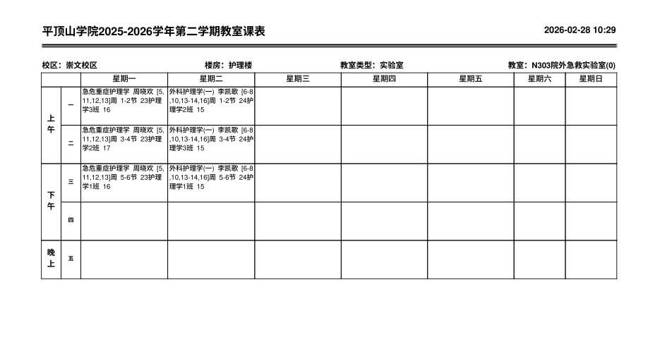 地点:崇文校区护理实训楼303