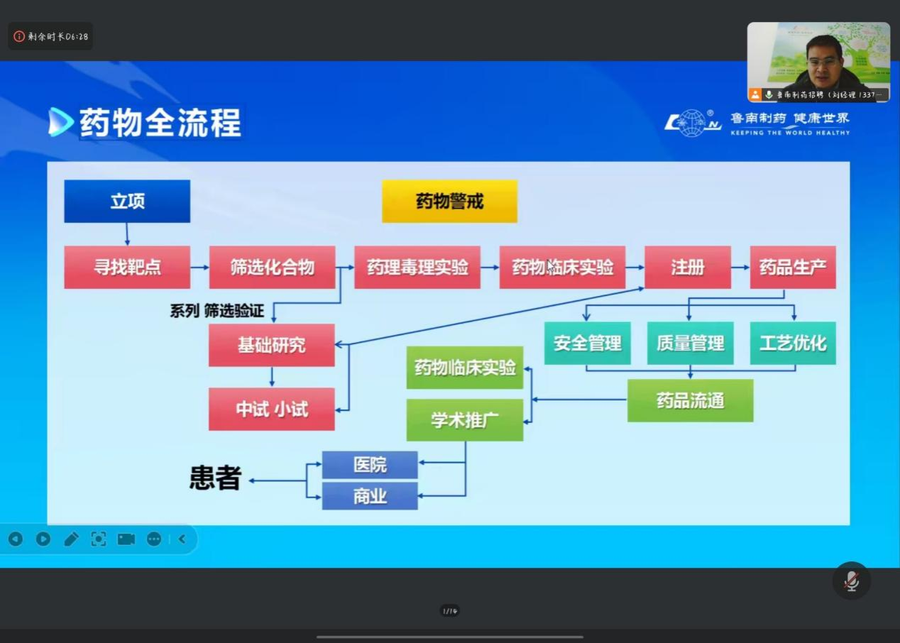 本次线上宣讲会不仅为我院学子搭建了高效的就业对接平台,也为鲁南制药集团引进优秀医药人才注入了新的活力。期待未来校企双方能进一步深化合作,共同推进人才培养与企业发展的互利共赢。